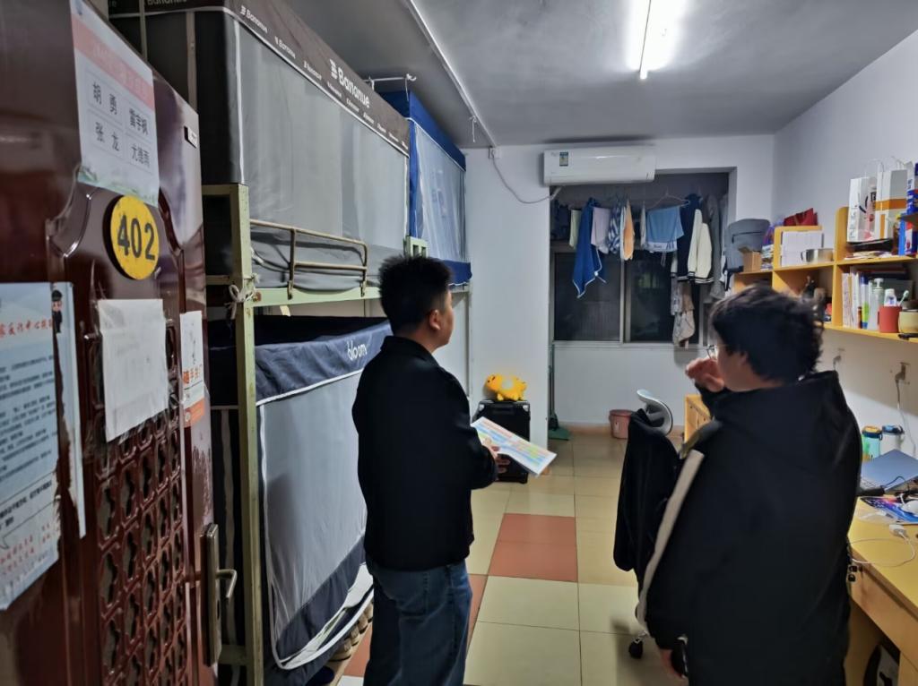 (通讯员张书豪)2024年11月21日,正规滚球app平台官网副书记尹小华老师,学工办主任黄承石老师以及辅导员林香亮老师于晚上八点一行,带着对同学们的深切关怀,走访了学院的学生寝室,深入了解同学们的学习与生活状况。旨在加强师生之间的沟通与联系,为同学们提供更加精准有效的帮助和支持。