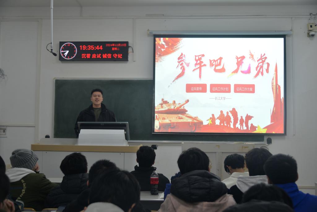 (通讯员 吴泓萱 吴静宜)征兵宣传进校园,点燃学子参军梦。12月10日晚7点,正规滚球app平台官网组织学生开展2025年春季征兵宣讲会。学校征兵宣讲员高依恒、郑一成主讲,正规滚球app平台官网征兵专干林香亮主持活动。