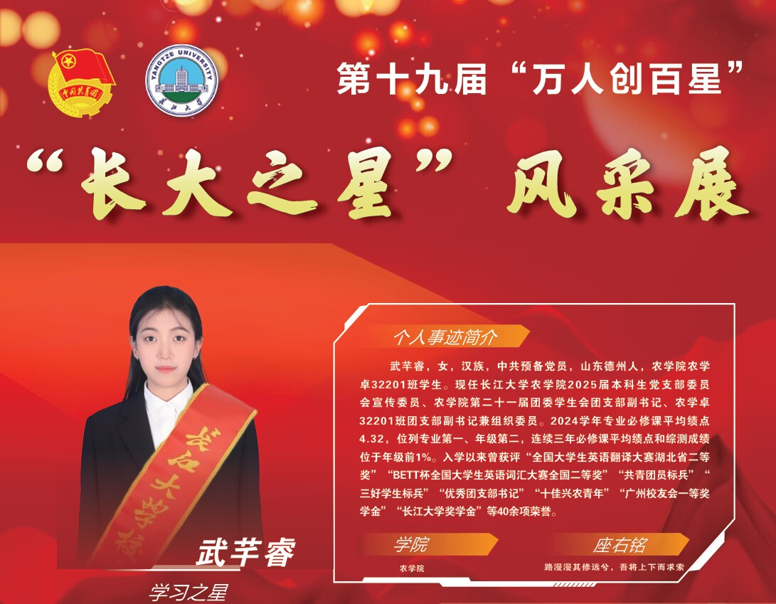 武芊睿,女,中共预备党员,山东德州人,农学卓32201班学生。
