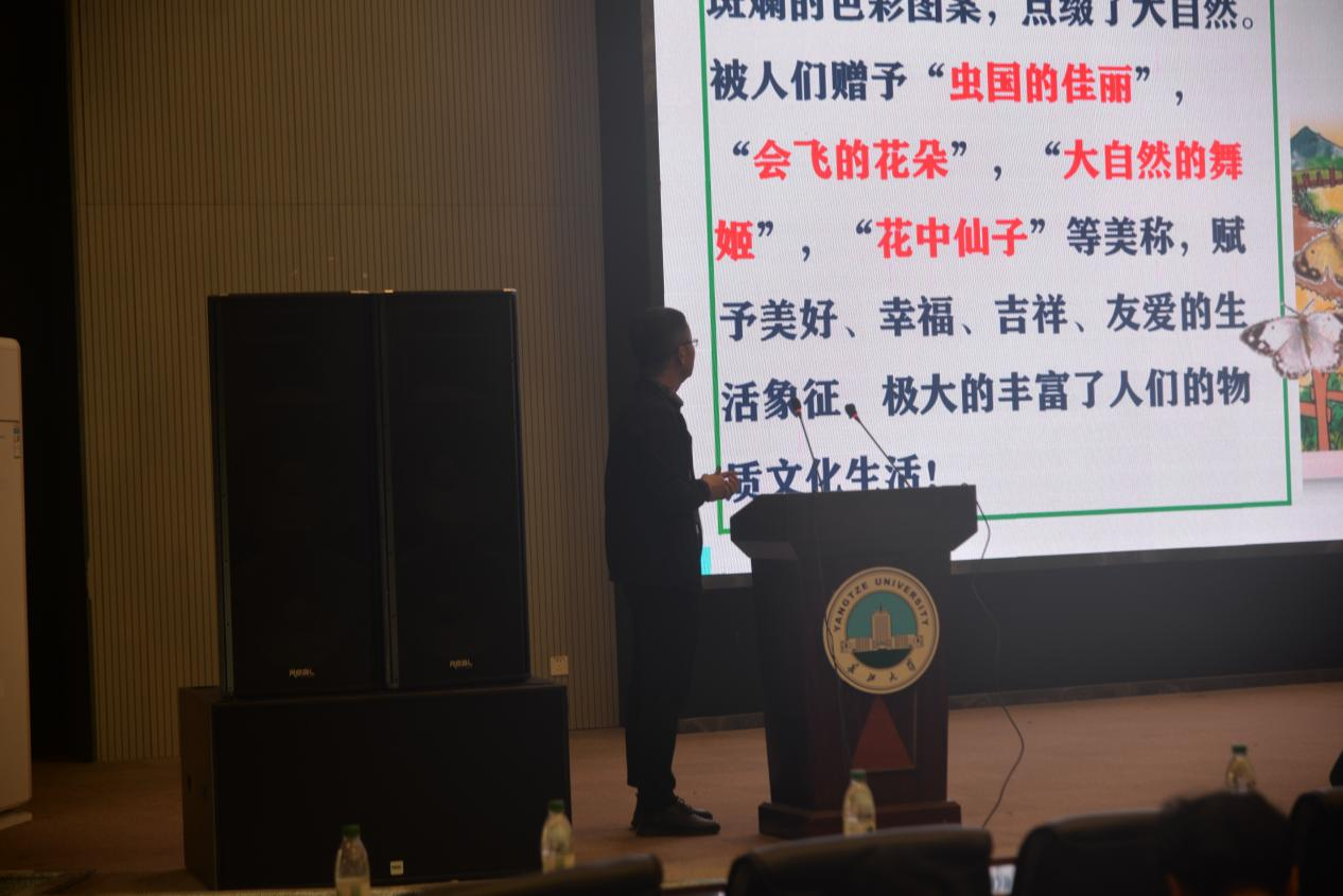 (通讯员 吴静宜 涂星雨/文 吴泓萱 邬道瑾/摄)在第三届美育文化节之际,为贯彻落实“寓美于教、融美于学、以美育人、以美化人”的教学宗旨,进一步丰富校园文化生活,拓宽学生科学视野,4月24日下午,正规滚球app平台官网特邀湖北省昆虫学会理事张建民教授,于农科大楼1058报告厅,为大一全体学生、阅读学社及昆虫兴趣协会成员开展“蝴蝶与人类文化趣谈”科普讲座。