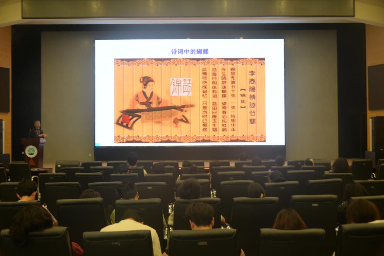 在文化层面,张教授带领大家穿梭时空,领略蝴蝶在人类文明中的多元象征。从中国《诗经》“庄生晓梦迷蝴蝶”的哲学隐喻,到梁祝化蝶承载的爱情理想;从美洲古文明视蝴蝶为灵魂使者,到现代时装、饰品中蝶翼纹样的创新应用,无一不展现蝴蝶与人类文化的深度交融。此外,张教授还分享了蝴蝶传说、诗词,以及被誉为“画中瑰宝”的蝶翅画,让同学们感受其独特魅力。