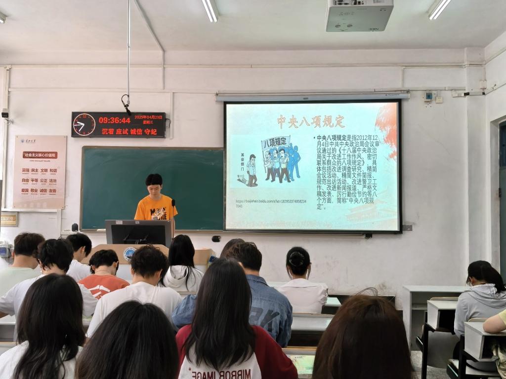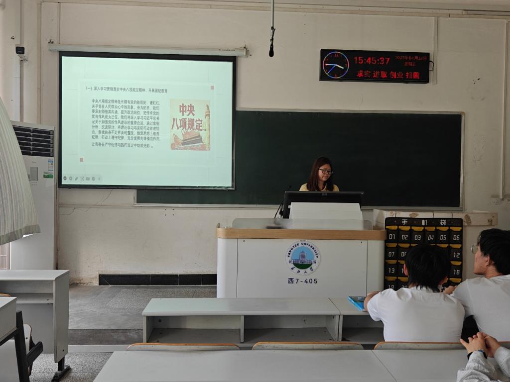 4月22日,农学卓32301支部在农科大楼3071开展团会活动,团支部副书记臧仕骏组织团员重温入党誓词,并邀请“优秀共青团员”周婧分享成长感悟,会上通过交流研讨的形式对中央八项规定精神与《中国共产主义青年团纪律处分条例(试行)》等内容进行了深入学习,各团员以两会精神为指引,将理论学习与实践育人相结合,推动两会精神在团员群体中落地生根,锻造堪当民族复兴重任的先锋力量。