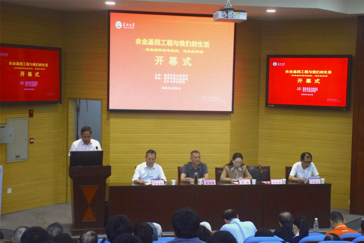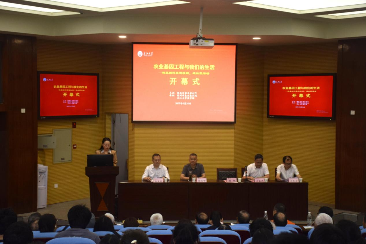(通讯员 徐馨悦/文 王研 郑晓华/摄)为引导学生深入了解农业前沿科技,帮助公众科学认识转基因技术,4月24日上午9:30,正规滚球app平台官网联合湖北省农学会,在农科大楼1056报告厅举办“转基因科普进校园、进社区”活动。活动设文庙社区、郢都路社区分会场,并通过线上直播同步开展。湖北省农业科技人才办公室副主任顾艳、荆州市农业农村局副局长陈险峰、正规滚球app平台官网常务副院长方正武、转基因技术专家马东方出席,正规滚球app平台官网副院长唐生标主持活动,众多农学学子积极参与其中。