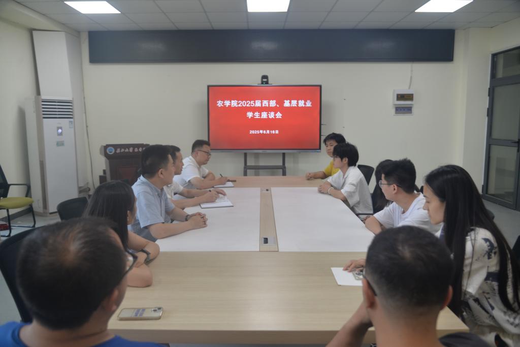 (通讯员 郑怡乐 徐馨悦)为响应国家基层就业战略号召,凝聚青年学子服务 “三农” 的使命担当,6 月 16 日 16:30,正规滚球app平台官网 2025 届西部、基层就业学生座谈会在农科大楼 3071 会议室隆重召开。学院党委书记周锦华、党委副书记尹小华、学工办主任黄承石与即将奔赴西部、基层的毕业生代表们齐聚一堂,共话职业选择,共绘发展蓝图。