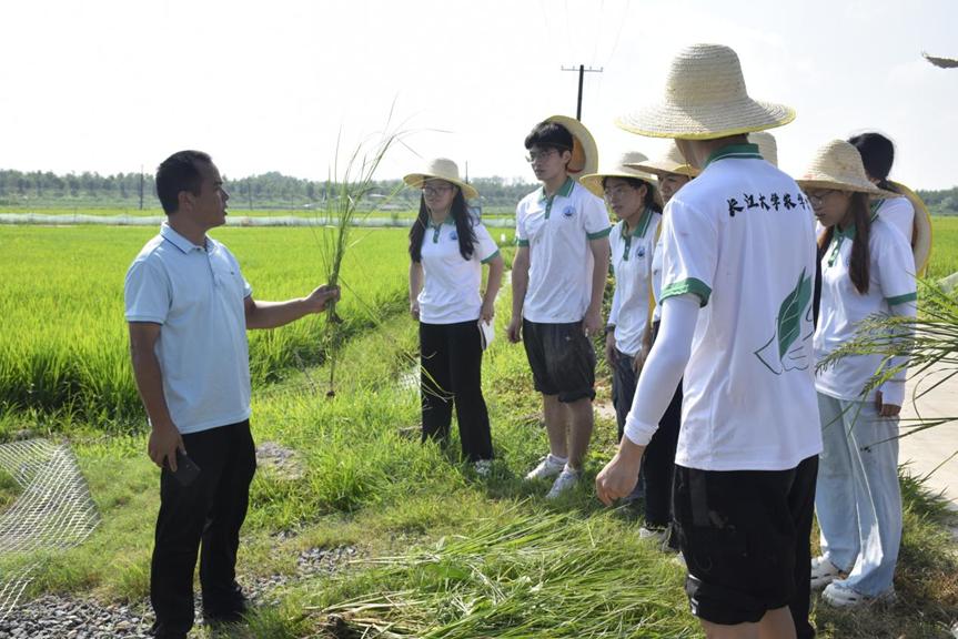 盛夏的阳光洒在绿油油的稻田上,泛起层层金色的涟漪。上午九时,在长安村党支部书记赵文龙和石首市农业技术培训学校副校长甘立新的热情接待下,正规滚球app平台官网党委副书记尹小华、院团委书记付雪娇带领着12名“三下乡”社会实践队的队员来到了这片充满生机的希望田野。
