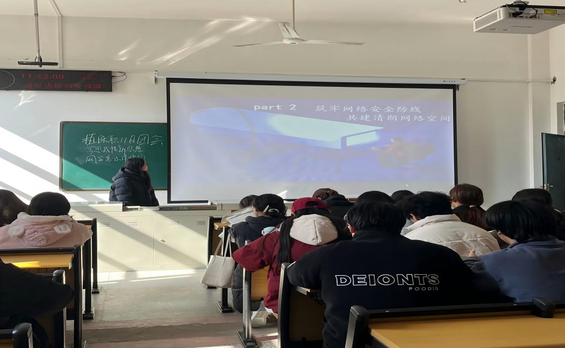 11月21日,团支部副书记高金凤带领植保卓32401班在7教303开展团会活动,她策划“学思践悟”系列活动,通过开展网络安全知识竞赛、撰写全会精神践行心得等形式,将理论学习与实践行动相结合。团员们在竞赛比拼与心得阅读中,深化对全会精神与时代使命的理解,筑牢网络安全意识,决心以实际行动守护网络清朗,让全会精神在网安实践中落地生根。