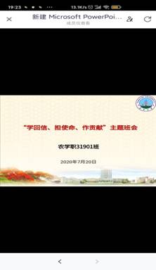 农学职31901班所有同学通过视频方式学习了回信的内容。学习委员带领大家讨论了当代青年的远大梦想和肩上重任,总结道:在新冠疫情面前,是国家为全国人民树立信心,给予力量,足以让我们坚定初心。