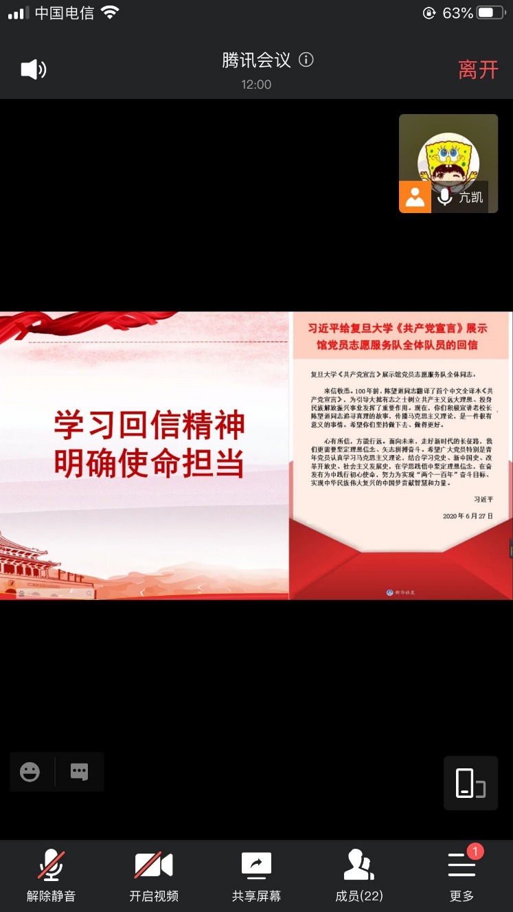 截止8月30日,滚球app官网农科学子除新疆籍外均已正常返校。9月,我们将开启新的学期,团日活动如期而至。本月的团会是2020年秋季的第一次团会,滚球app官网采取了线上线下相结合的方式开展本次团会。由于第一周属于宿舍观察期,农学产31901团支部于9月6日通过“腾讯会议”开展了本次团会活动。伊始,主持人亢凯介绍本次活动的主题,带领本团支部学习了习近平总书记在6月27日给复旦大学《共产党宣言》展示馆党员志愿服务队全体队员的回信。