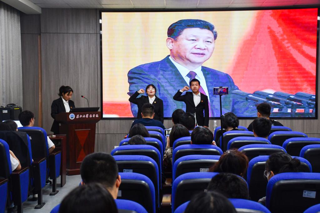 比赛伊始,主持人杨孟宁和陈雨晗向观众及参赛人员介绍了比赛规则,参赛选手开始有序上台向评委和观众演讲参赛内容。此次主题分为“主题讲演”与“学'习'一点通”两部分。“主题演讲”环节大部分同学通过PPT形式,连接社会与个人,将自己的心得与感悟展现出来,同学们讲述的内容贴近生活,将青年的责任担当与社会所赋予的使命相结合,演讲的方式生动形象,演讲的形式多种多样。“学'习'一点通环节要求每位主讲人自选习近平总书记的一句话,同学们有的通过录音、视频、照片等多媒体方法讲解和展示,也有同学邀请助演一同进行表演,此环节不但锻炼了主讲人的演讲能力,也使观众的观赏兴趣大大提高。