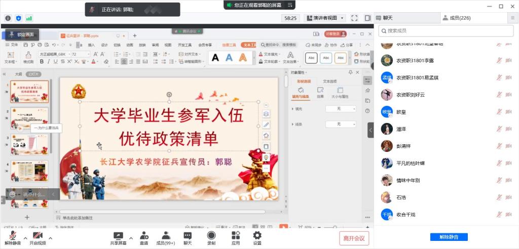 据了解,此次征兵宣传,为力争做到防疫工作、征兵工作两促进、两不误,采取线上宣讲模式,积极宣传大学生应征入伍的政策,号召广大适龄青年从军报国。