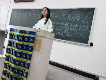 会议第二项,第三期青马学习小组导员戎芙会为大家介绍了青马的三早精神、陈琦睿为大家介绍了青马传统的“抢黑板”环节、常迪为大家介绍了各个组委的职责和扣分制度。会上,学员们积极做笔记,认真聆听,认真思考,展现出了青马学习小组积极向上的姿态。
