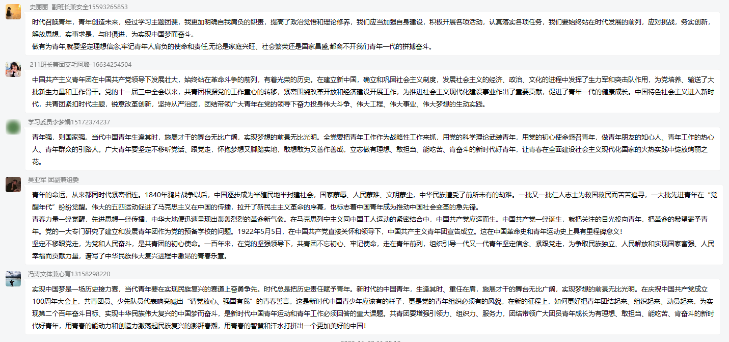 同学们纷纷表示,要积极向党组织靠拢,学好理论知识,坚定不移听党话、跟党走,怀抱梦想,脚踏实地,立志做有理想、敢担当、能吃苦、肯奋斗的新时代好青年,让青春在全面建设社会主义现代化国家的火热实践中绽放绚丽之花。