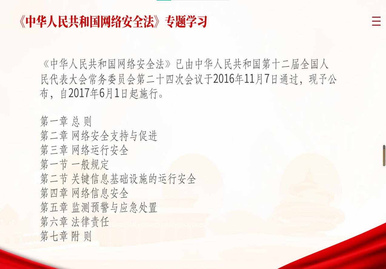 其中植保职32001班于11月19日在2教304开展了本次主题团会活动,主持人孙帅带领同学们学习了《中华人民共和国网络安全法》,借此向大家介绍了为维护网络空间主权和国家安全、社会公共利益,保护公民、法人和其他组织的合法权益,制定法规,促进经济社会信息化健康发展。网络安全事关全社会的和谐稳定,事关党的执政地位的稳固,事关全社会弘扬社会主义核心价值观。同时,网络安全和信息化是事关国家安全和国家发展、事关广大人民群众工作生活的重大战略问题。网络空间作为继陆地、海洋、天空及太空之外的第五维空间,其安全问题已经上升到国家安全的高度。对此,同学们表示作为青年团员要做敢于斗争、善于斗争的模范,要做艰苦奋斗、无私奉献的模范,带头站稳人民立场,脚踏实地、求真务实,吃苦在前、享受在后,甘于做一颗永不生锈的螺丝钉,积极主动地站在为人民服务的前线。