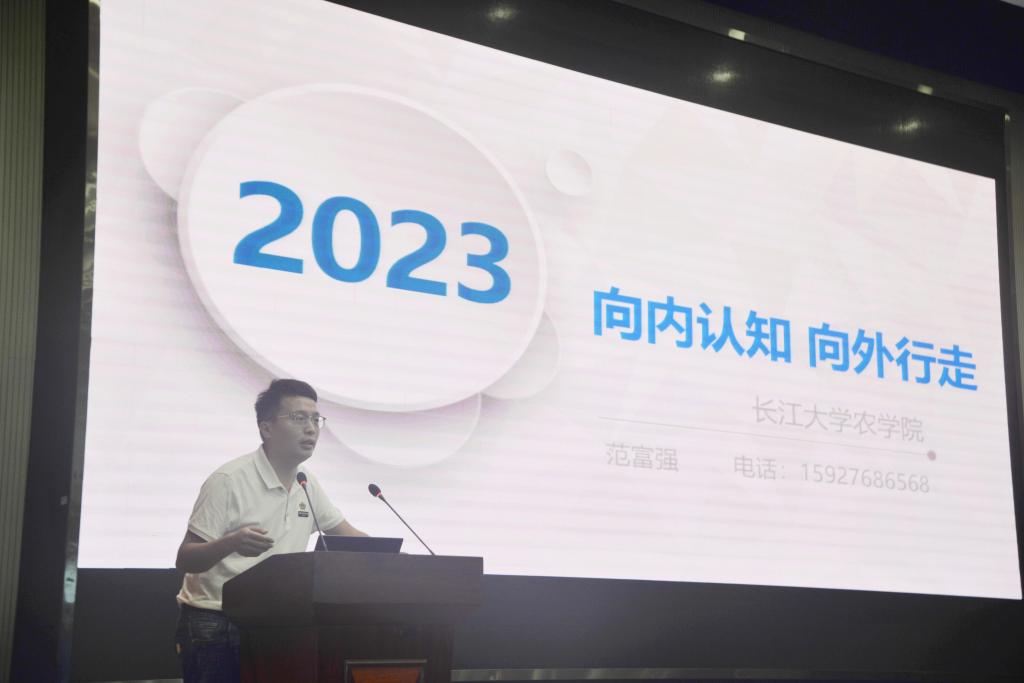 (见习记者/谢诗琳 任俊杰)4月20日下午,正规滚球app平台官网“长大20年”学术论坛暨耕读讲坛在农科大楼1058报告厅成功举行。本次讲坛中,由2017届优秀校友、北方大区农化技术推广经理范富强担任主讲嘉宾并向2019级毕业生、2022级本科生同学作以“向内认知,向外行走”为主题的报告。党委副书记尹小华、学工办主任杨云锋、辅导员唐玉婷参加活动,本次活动由党委副书记尹小华主持。