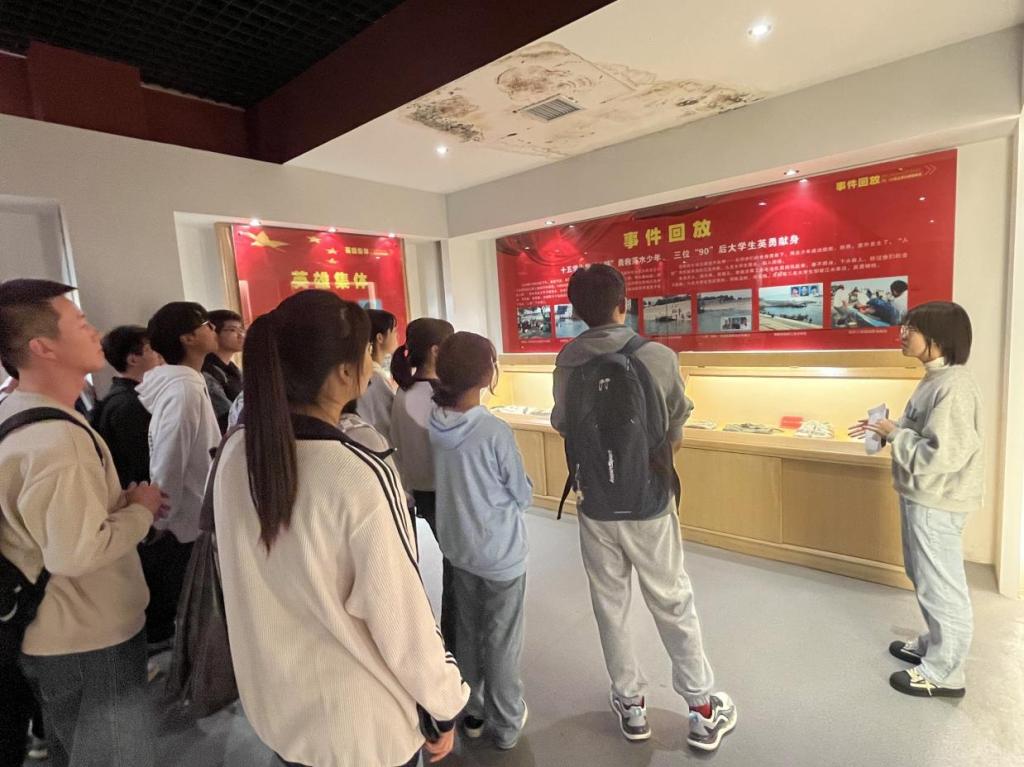 讲解员首先向来参观的同学们介绍了正规滚球app平台官网名人馆中的优秀校友,他们勉励同学们向名人馆中的优秀校友学习,还与同学们共勉,共同发扬正规滚球app平台官网“求实、进取、创业、报国”的精神,然后根据纪念馆内的图像资料及英雄遗物向同学们详细介绍了“10·24”英雄事迹:15名英雄舍己为人,敢为人先,组成“人链”救下落水儿童,3名同学英勇牺牲。在场的学生无不眼眶泛红,致敬、默哀、鞠躬,同学们纷纷表示了对英雄的深深敬意。最后,讲解员呼吁大家珍惜生命,不到长江游泳,莫让悲剧重演。