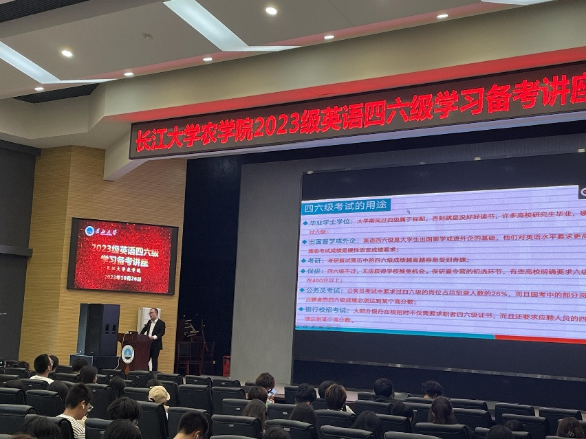 (通讯员 王静茹)为认真做好考试工作,创建优良学风、考风,滚球app官网于10月26日下午在农科大楼1058召开2023级英语四六级学习备考讲座,23级全体同学及20-22级部分同学参加。本次讲座邀请到胡凯老师主讲,由辅导员唐玉婷主持。