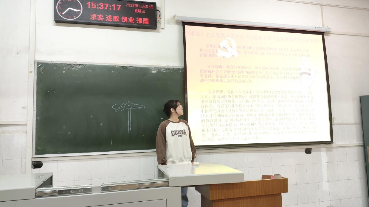 我们应做好学习及宣传工作,祖国的发展掌握在我们手中,我们应谨记习近平总书记的教诲,把总书记的讲话精神牢记心中,建成社会主义现代化强国,实现中华民族伟大复兴,这是一场接力跑。我们应紧跟时代步伐,应以习近平总书记重要讲话为指引和鞭策,为弘扬党的二十大精神,弘扬伟大建党精神,坚定历史自信,增强历史主动,发扬斗争精神,为实现党的二十大提出的目标任务而团结奋斗。我们应坚定信念,砥砺前行,为共同实现民族复兴国家富强而贡献自己的一份力量。