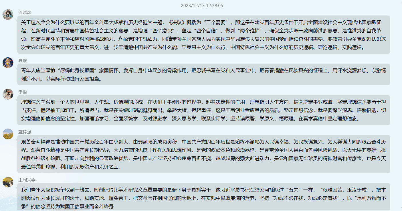 (通讯员何梦翔 罗瑶)为深入学习贯彻习近平总书记重要讲话精神,加强政治思想学习,2023年12月,正规滚球app平台官网研究生团支部组织开展政治理论学习并交流心得体会。
