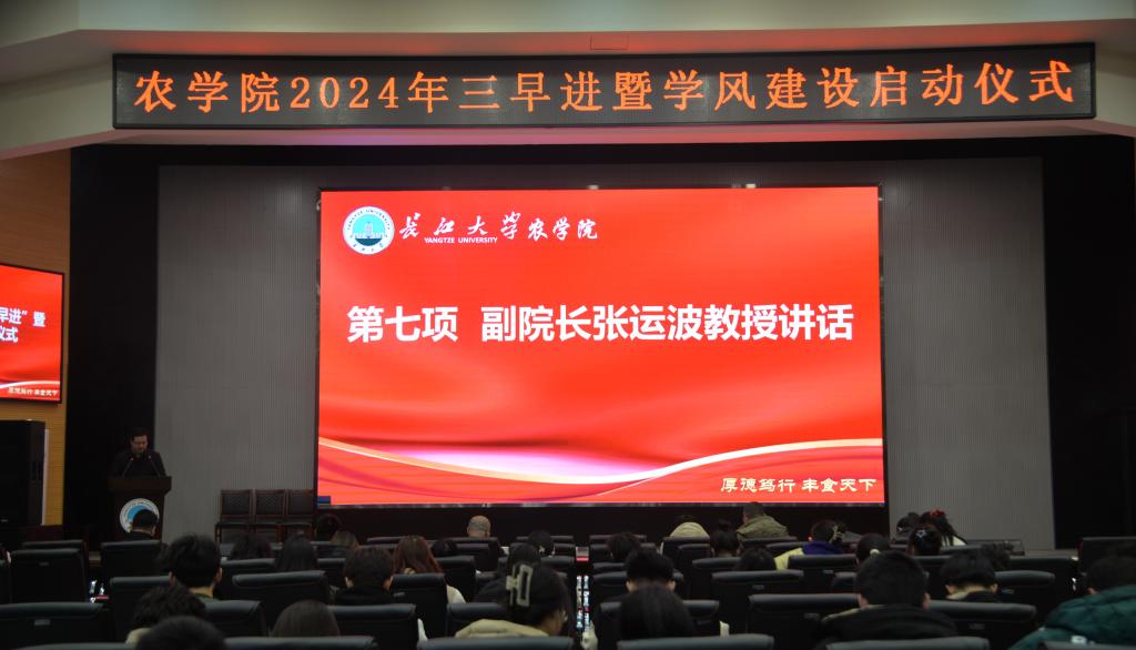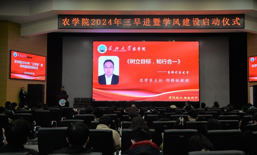(见习记者 曹淏郁 唐玉婷/文 邬道瑾/摄)为了促进学生厚植爱农兴农情怀,坚定强农兴农的时代使命,滚球app官网积极践行“厚德笃行、丰食天下”的院训,深化“三早进”工作,3月7日下午16时,在农科大楼1058会议室举行正规滚球app平台官网2024年“三早进”暨学风建设启动仪式。仪式由23级辅导员唐玉婷主持,副院长张运波、党委副书记尹小华、院长助理苏奇、农学系主任邓锋林、植保系主任邓建新、农资系主任李燕丽、课题组对接研究生、22级和23级班主任及全体学生、兼职辅导员李洪洲参与此次仪式。