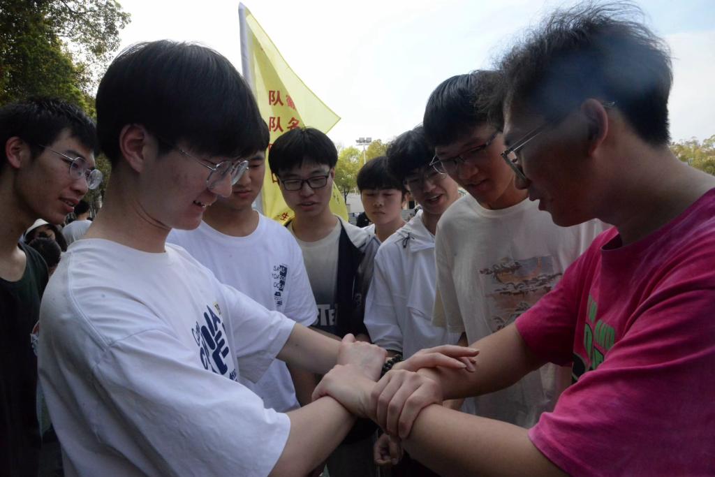 最后的“躲进蜘蛛网”游戏考验着同学们的创新能力,在历经七十多次尝试后最终在男女生的完美搭配下顺利完成了任务。
