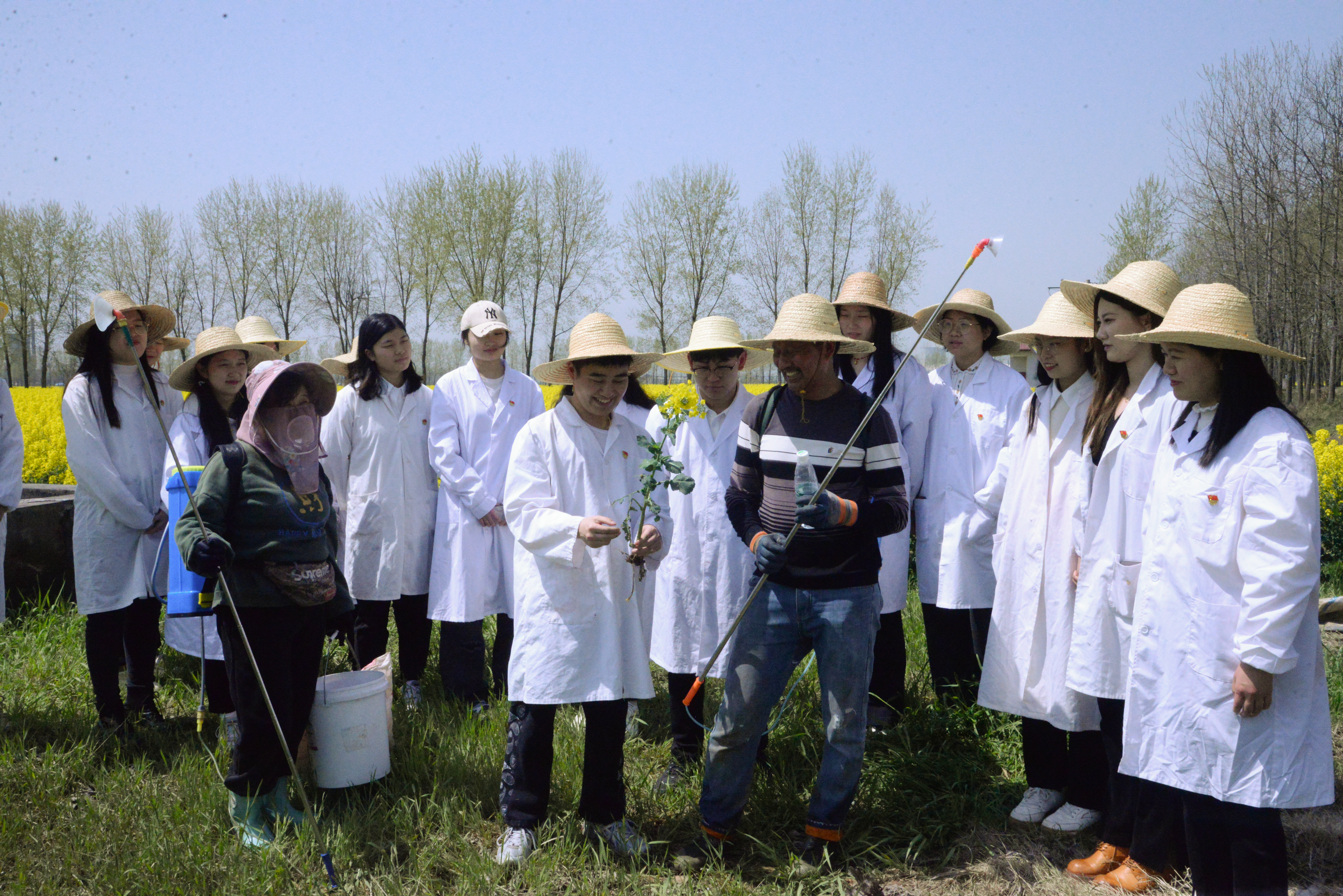 如何防治油菜菌核病?党支部农药学研究方向的邢高山、田尧给出了防治建议,“预防为主,适时交替用药,及时清除植株病残体,适当深耕,合理密植,做好田间排水”。详细专业的解说,赢得了种植户们的阵阵掌声。