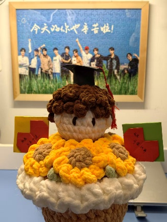 127的青春里,从没有孤军奋战的身影,唯有彼此托举的温暖。为了给决意考研的襄阳姑娘加油鼓劲,室友们联手准备了一份满载心意的礼物——一束亲手钩织的向日葵花束,搭配着背景墙上“十个勤天”的拼图,成了寝室里最动人的风景。