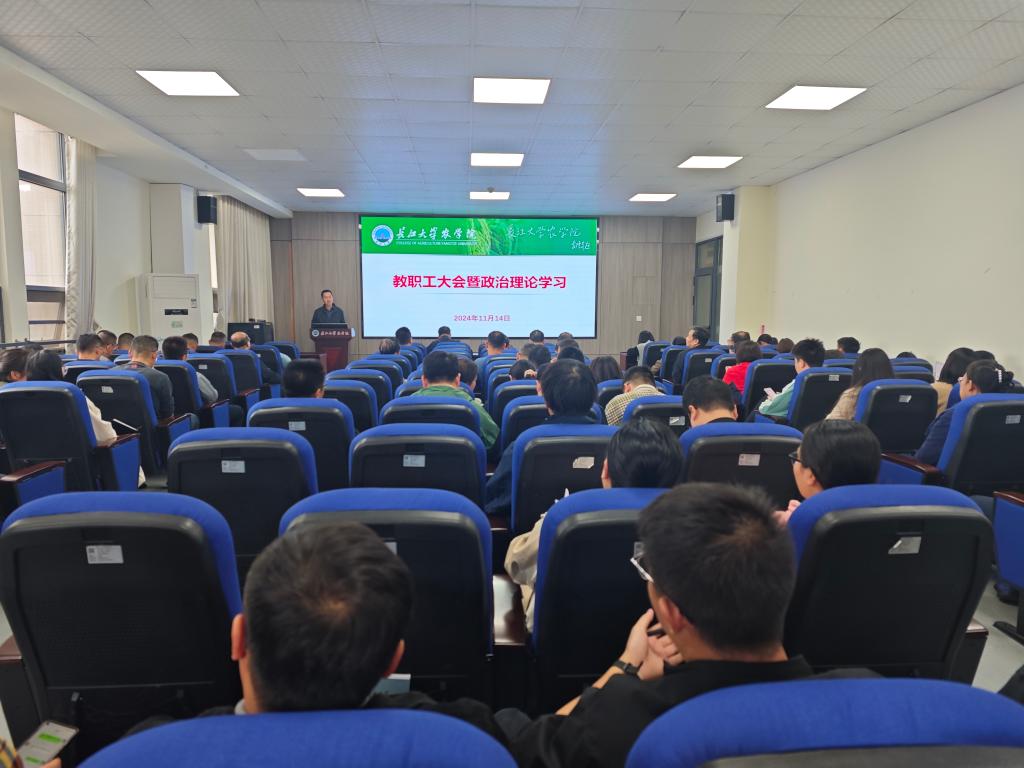 (通讯员 付雪娇)11月14日下午,正规滚球app平台官网在农科大楼3073会议室召开教职工大会,开展11月份政治理论学习,通报并安排近期主要工作,会议由学院党委书记周锦华主持。