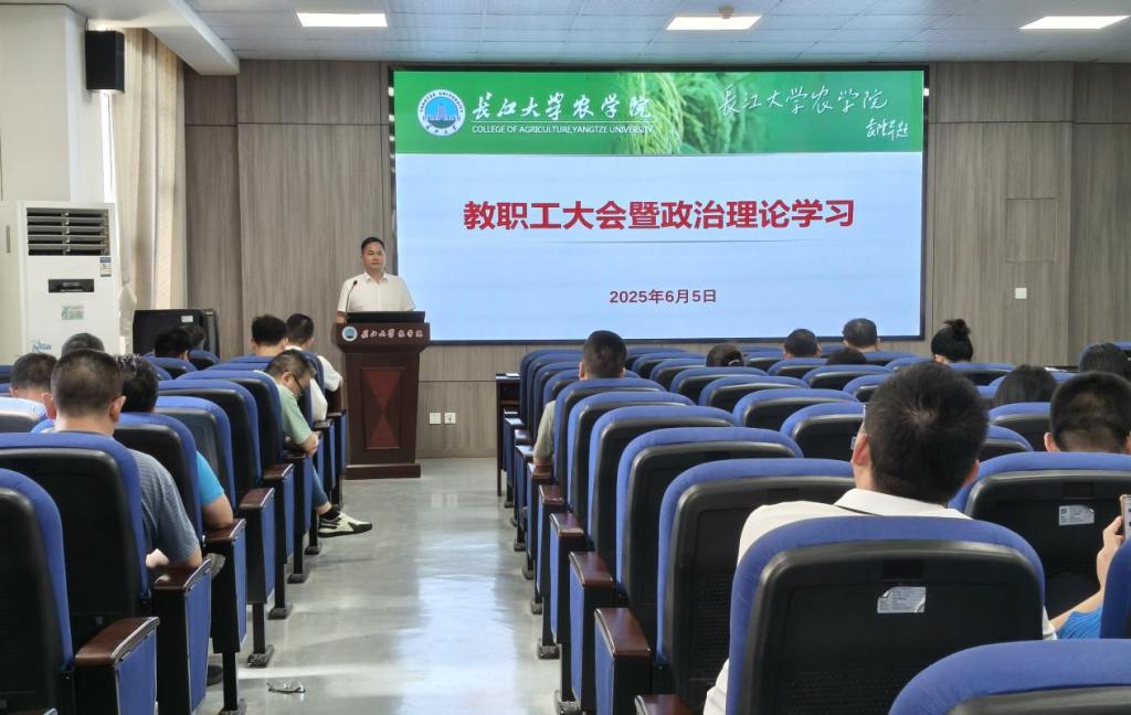 (通讯员 刘晓雪)6月5日下午,正规滚球app平台官网在农科大楼3073会议室召开全体教职工大会,进行6月份政治理论学习,通报和安排近期主要工作,学院党委书记周锦华主持会议。