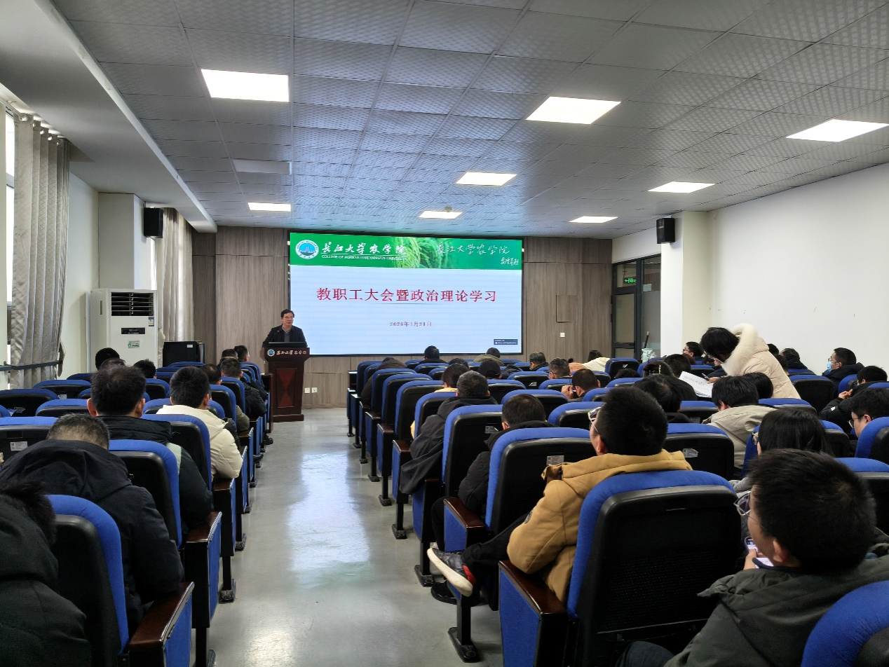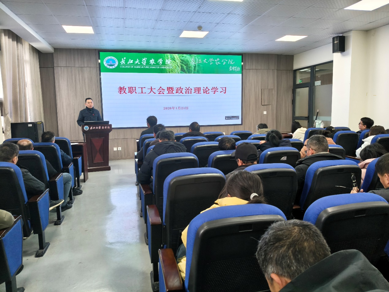 (通讯员 王雪)2026年1月21日下午,正规滚球app平台官网在农科大楼3073会议室召开全体教职工大会暨政治理论学习会议。会议由学院党委书记周锦华主持,全体教职工参加。