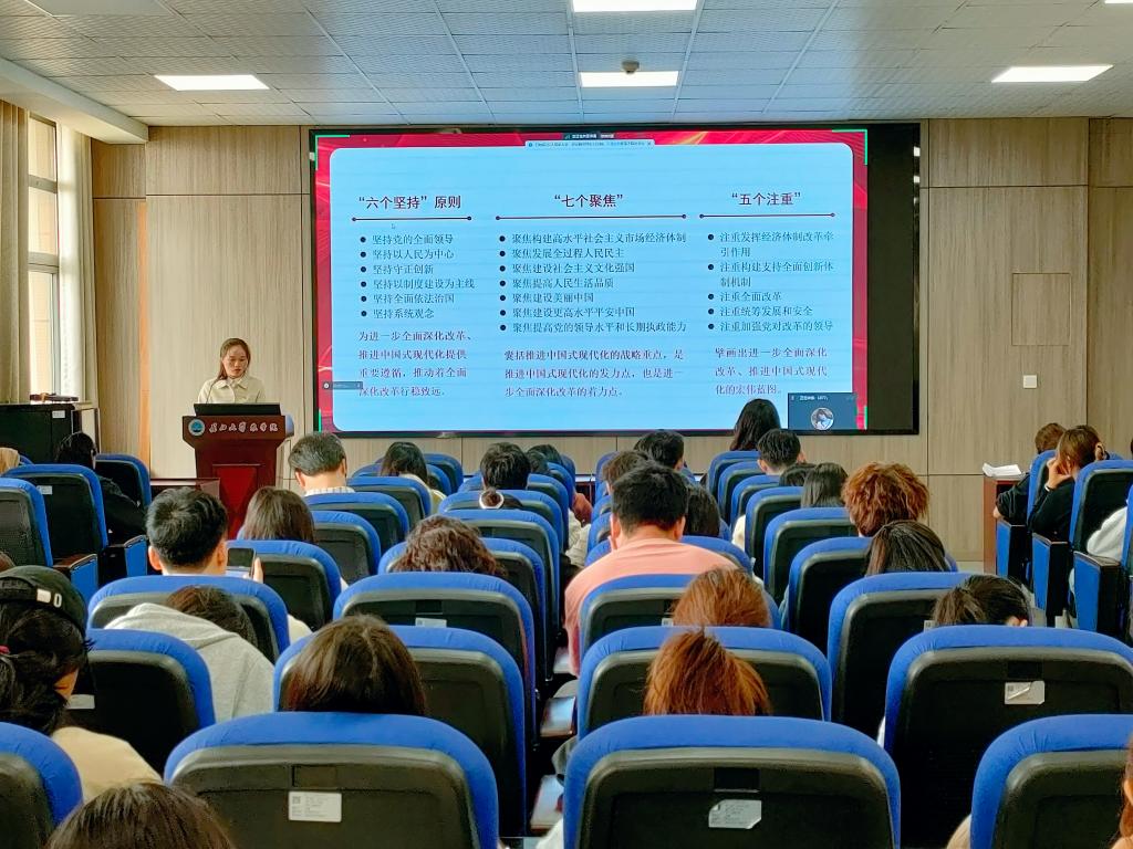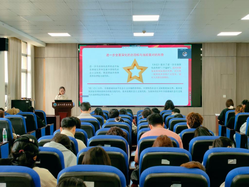 10月28日的培训由正规滚球app平台官网分团委书记付雪娇老师主讲。付雪娇老师以"蹄疾步稳谋改革,勇毅笃行谱新篇"为主题,全面、系统、深入地阐释和解读了党的二十届三中全会精神内涵。她从党的二十届三中全会的主题由来、召开意义、做出的部署与创新四个方面,为我们呈现了一幅生动的图景。