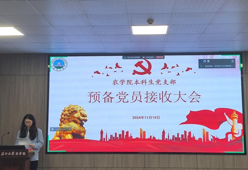 (通讯员 武芊睿)为发展壮大党员队伍,充实党的新生力量,11月19日,正规滚球app平台官网本科生党支部在农科大楼3073召开2024年下半年预备党员接收大会,活动以线上线下相结合的方式开展,讨论发展对象张旭阳等9名同志的入党问题。应到会党员27名,实到会20名,应到会有表决权的正式党员9人,实到会7名,超过半数,符合党员发展流程。会议由支部副书记高欣怡同志主持。