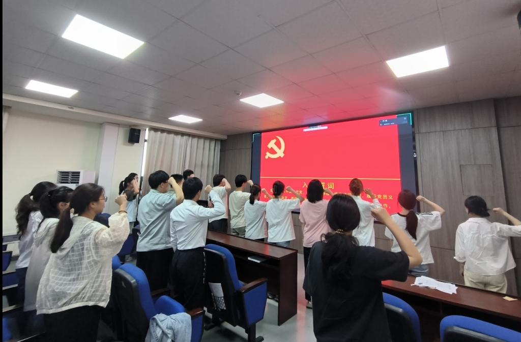会议最后,预备党员在曾袁琳珺同志的带领下面向党旗,庄严宣誓。党支部书记黄承石老师宣读大会决议并对新党员作出要求,希望各预备党员牢记党的宗旨,加强政治理论学习,增强专业能力,向优秀共产党员学习并树立先锋模范作用,锐意进取,开拓创新,共同为争做新时代合格党员而不断学习、努力奋进。