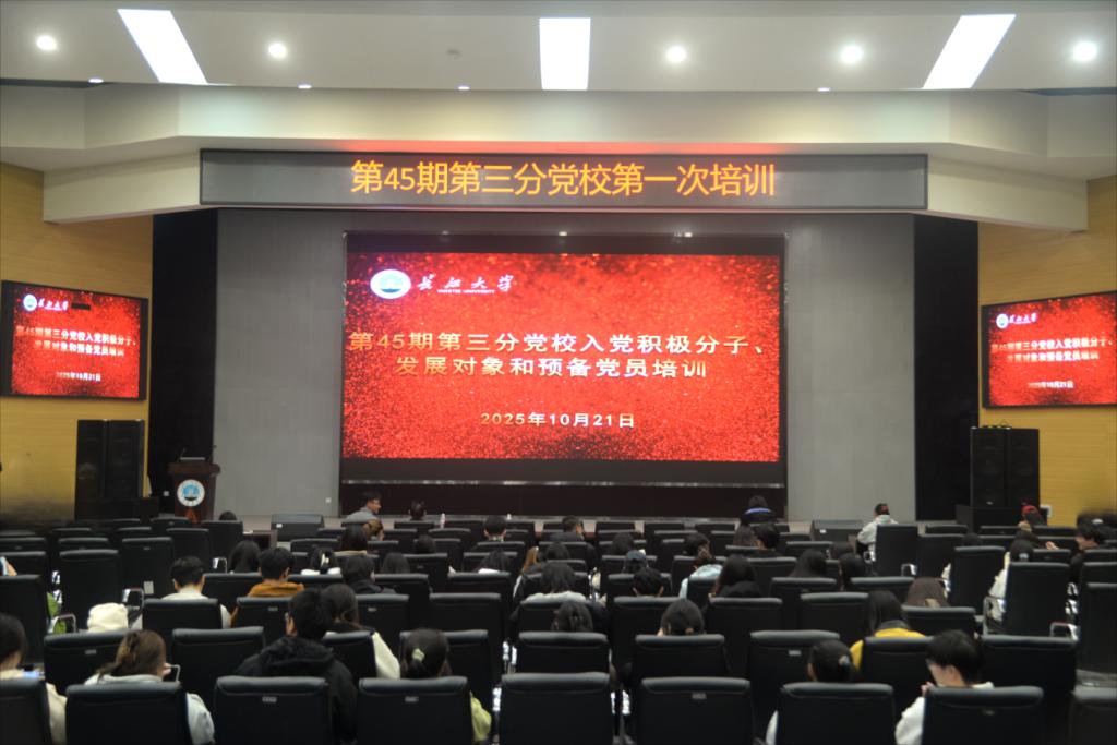 (通讯员 郑怡乐 王思雨/文 严树彬 方学斌 王浩源/摄)“学党章明方向,强信念向组织”。为深化青年学员对党的理论认知,筑牢 “跟党走、为人民” 的理想信念根基,正规滚球app平台官网于10月21日晚 7点在农科大楼1058报告厅开展第45期第三分党校第一次培训。本次培训由正规滚球app平台官网党委书记周锦华主讲,辅导员唐玉婷主持,生命科学学院辅导员李敏和第三分党校入党积极分子、发展对象及预备党员共同参与。