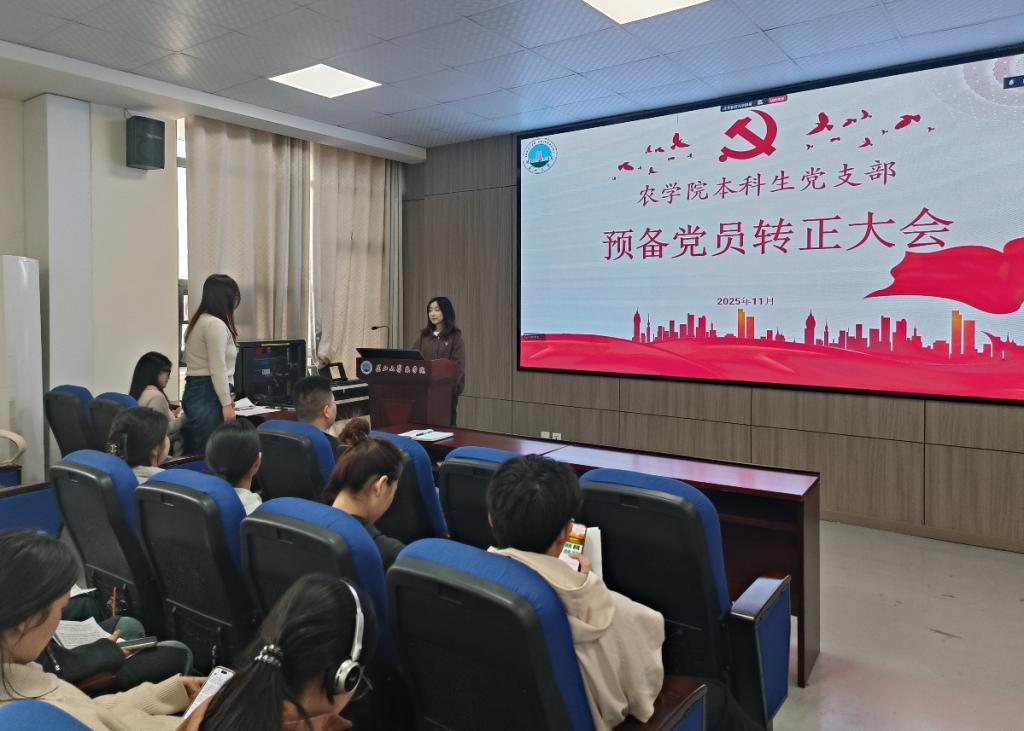 (通讯员 武芊睿)为进一步壮大和优化党员队伍,增强党组织的凝聚力与战斗力, 11月19日,正规滚球app平台官网本科生党支部在农科大楼3073召开2025年下半年预备党员转正大会,讨论预备党员肖雅萱等3名同志的转正问题。应到会党员19名,实到会19名,应到会有表决权的正式党员7人,实到会7名,超过半数,符合党员发展流程。会议由党支部书记黄承石老师主持并作总结发言。
