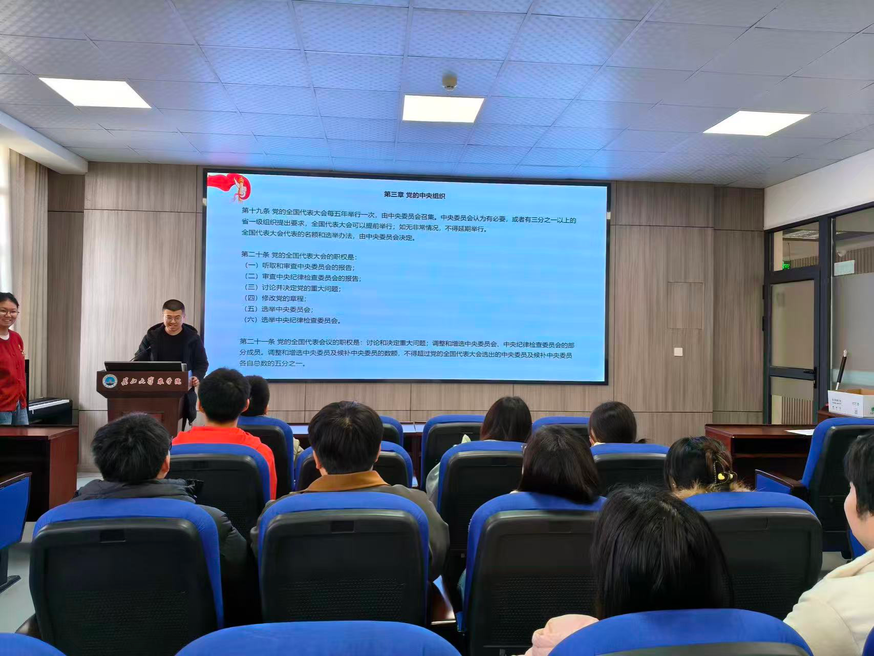 高群同志带领全体党员同志逐字精读领会《中国共产党章程》第三章“党的中央组织”内容,通过本次学习,党员们对党的最高领导体系的设立原则、运行机制有了更系统、深刻的认识,同时在思想觉悟、责任担当上也有了新的思考和提升。