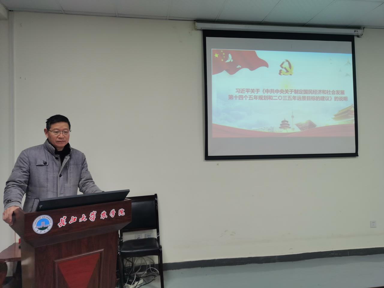 为全面贯彻十九届五中全会精神,深入学习十九届五中全会中的“新发展”理念,12月24日下午3时,滚球app官网党委书记冯发明在农科大楼3073会议室给全体党员教师分享了学习贯彻党的十九届五中全会精神体会,对《国民经济和社会发展第十四个五年规划和二0三五年远景目标建议》进行全面解读。