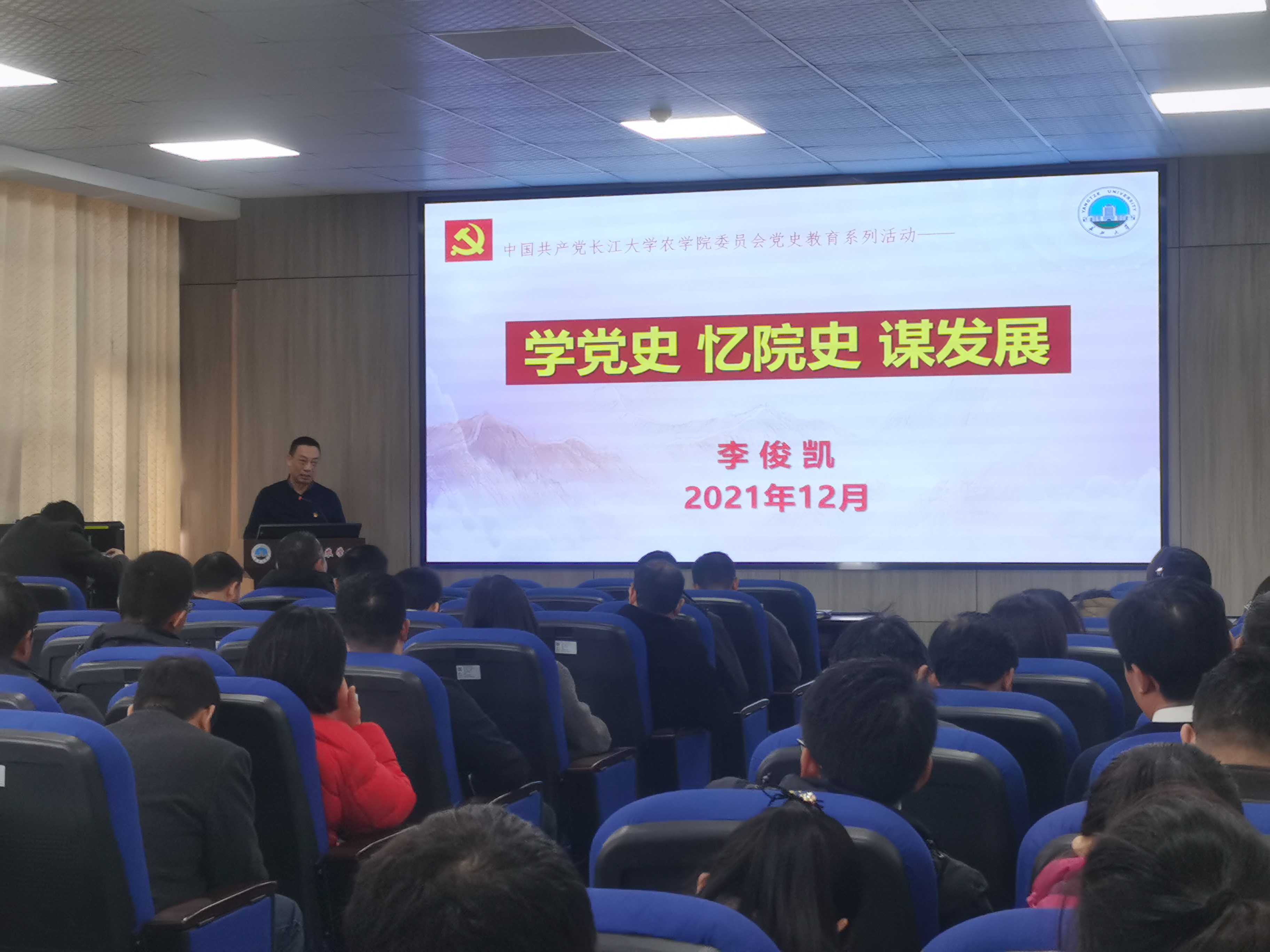 12月2日下午,在农科大楼3073会议室,正规滚球app平台官网院长李俊凯以《学党史 忆院史 谋发展》为题,为全院教职工上了一堂生动的党课。