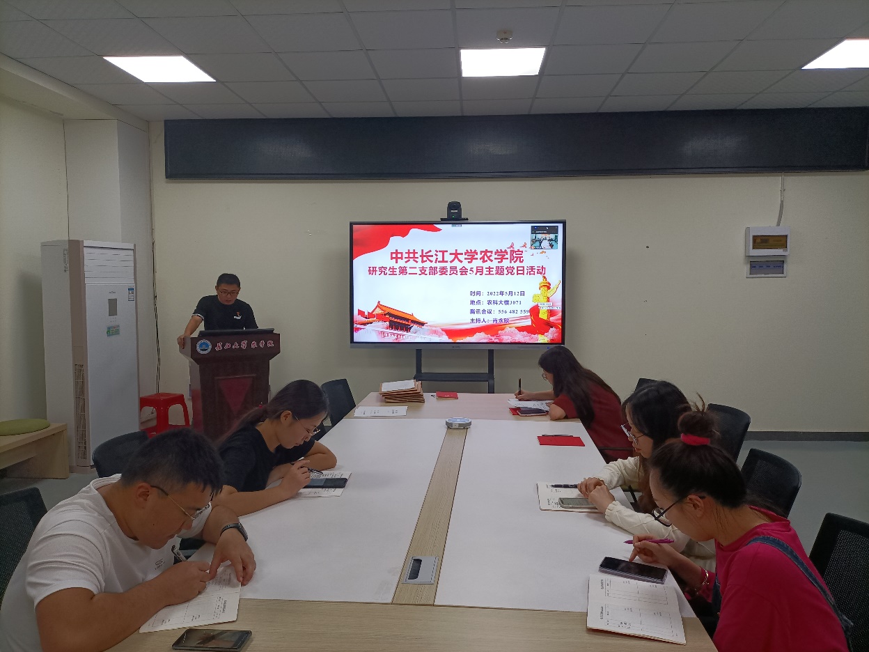 5月12日晚上7点30分,滚球app官网研究生第二党支部在农科大楼3071开展了5月份主题党日活动,活动结合腾讯会议的方式开展。全体在校党员和校外联培党员参与了此次活动,会议由支部副书记肖永欣主持。