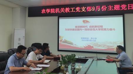 (通讯员 吴霞)9月23日下午,正规滚球app平台官网机关教工党支部全体党员在农科大楼3064会议室开展了9月支部主题党日活动,活动由支部书记张定国同志主持。