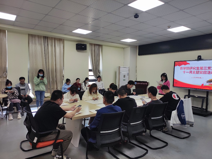 (通讯员 邹宇傲)11月17日中午12:30,滚球app官网研究生第三党支部在农科大楼3071开展11月主题党日活动暨支委会选举仪式。活动结合腾讯会议的方式开展,全体在校党员和校外联培党员参与了此次活动,本次活动由支部党员杨彩仙同志主持。