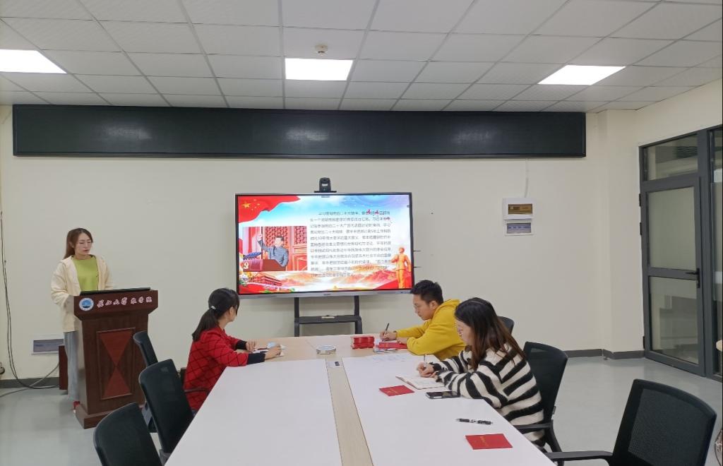 会议伊始,组织委员吴怡燃同志带领全体党员重温入党誓词。紧接着,时锦超同志对本月党费交纳情况进行说明。随后,党员集体诵读《中国共产党章程(修正案)》总纲相关内容,并观看《习近平总书记在瞻仰延安革命纪念地时的重要讲话精神》的学习视频。接着,进入集体学习党的创新理论环节,由吴怡燃、赵伟同志分别讲授党课——《“五个牢牢把握”学习二十大精神的金钥匙》和微党课——《深入学习习近平新时代中国特色社会主义思想》;宋梦圆同志带领学习《习近平谈治国理政》第四卷第三至第五部分;韩硕同志带领学习《习近平总书记在党的二十大闭幕会上的重要讲话精神》;付志珍同志带领学习《中共中央关于认真学习宣传贯彻党的二十大精神的决定》。通过此次理论学习,各位党员同志们深刻认识到作为新时代的研究生,应当坚定历史自信、增强历史主动,坚定自觉地同以习近平同志为核心的党中央保持高度一致,在习近平总书记指引下,在新的赶考之路上向党和人民交上新的优秀答卷。