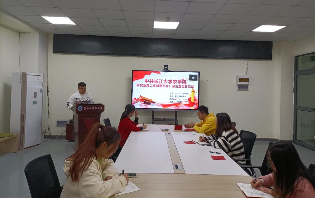 (通讯员 曹佩娜 宋梦圆)11月17日下午3点,滚球app官网研究生第二党支部在农科大楼3071开展十一月主题党日活动,活动结合腾讯会议(ID:709737037)线上线下同时开展。全体在校党员及校外联培党员参与此次活动,活动由时锦超同志主持。