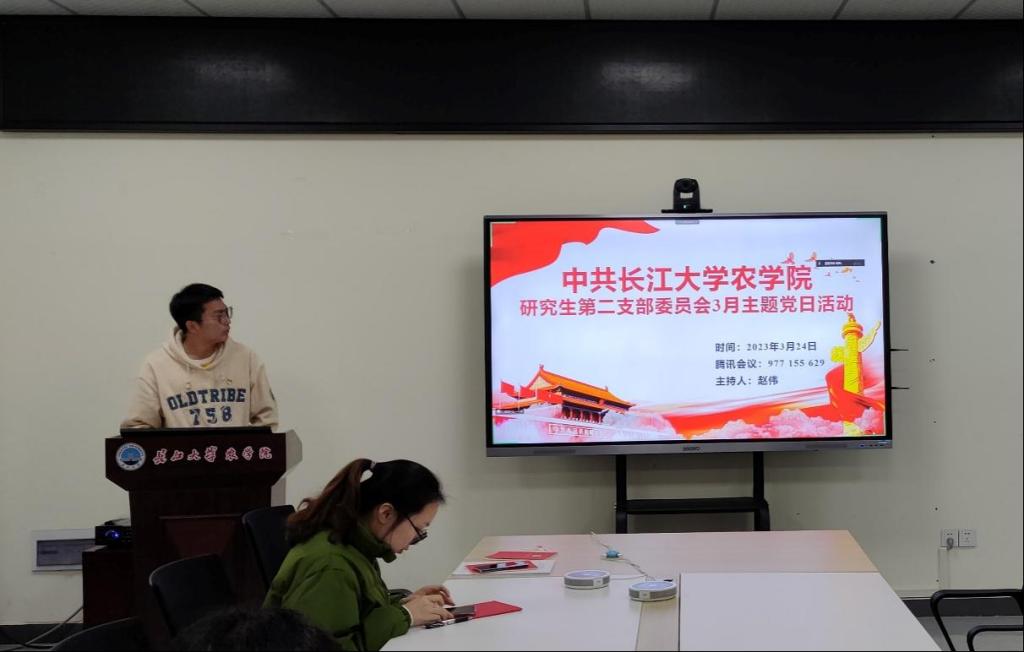 (通讯员 曹佩娜 宋梦圆)3月24日下午3点,滚球app官网研究生第二党支部在农科大楼3071开展三月份主题党日活动。全体在校党员和校外联培党员通过线上和线下的形式共同参与本次活动,活动由赵伟同志主持。
