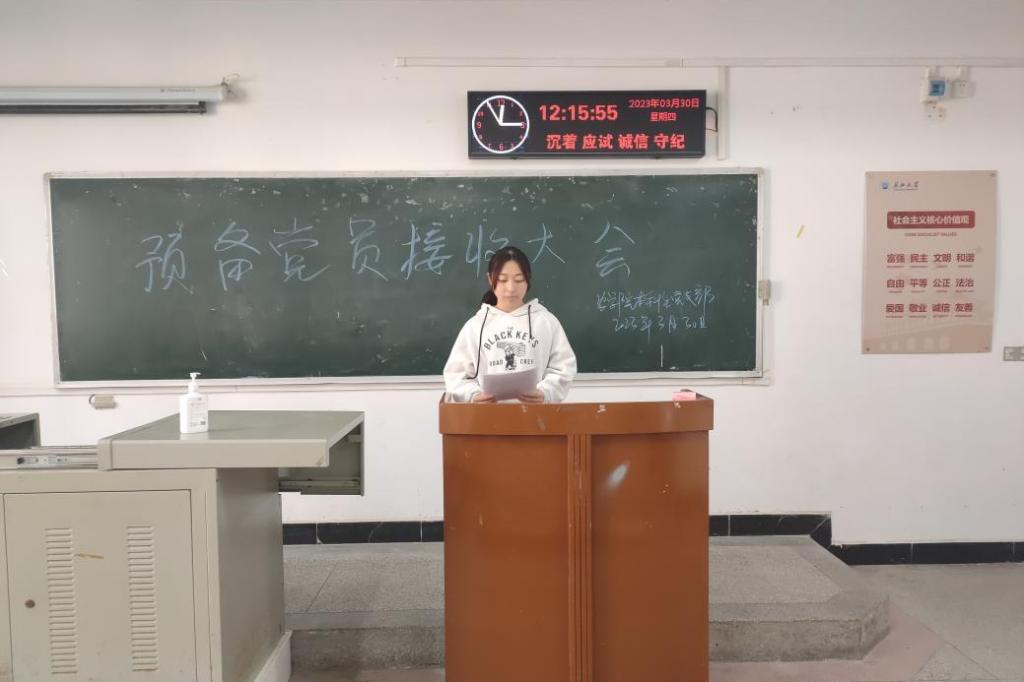 (通讯员 亢凯)为进一步加强党员队伍建设,壮大党员队伍,3月30日中午12:10,滚球app官网本科生学生党支部在7教109教室顺利开展2023年上半年预备党员接收大会。支部党员应到54人,实到32人,应到具有表决权的正式党员25人,实到15人,超过半数,符合大会召开条件。会议由支部副书记唐海洋同志主持。