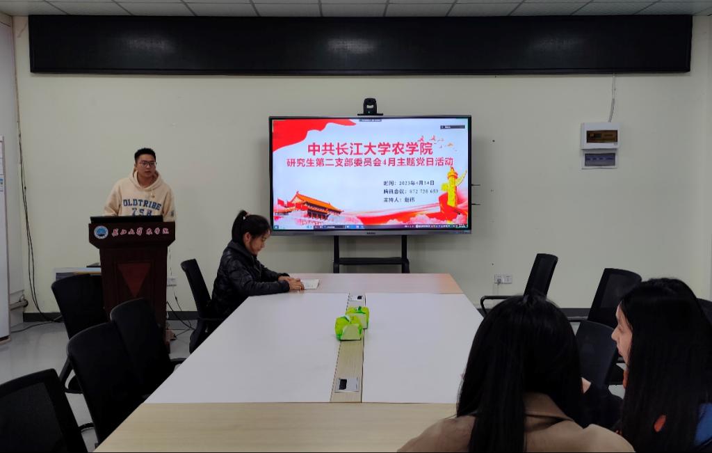 (通讯员 曹佩娜 宋梦圆)4月24日下午3点,滚球app官网研究生第二党支部在农科大楼3071开展4月份主题党日活动,活动结合腾讯会议同时在线上召开。全体在校党员和校外联培党员共同参与,活动由赵伟同志主持。