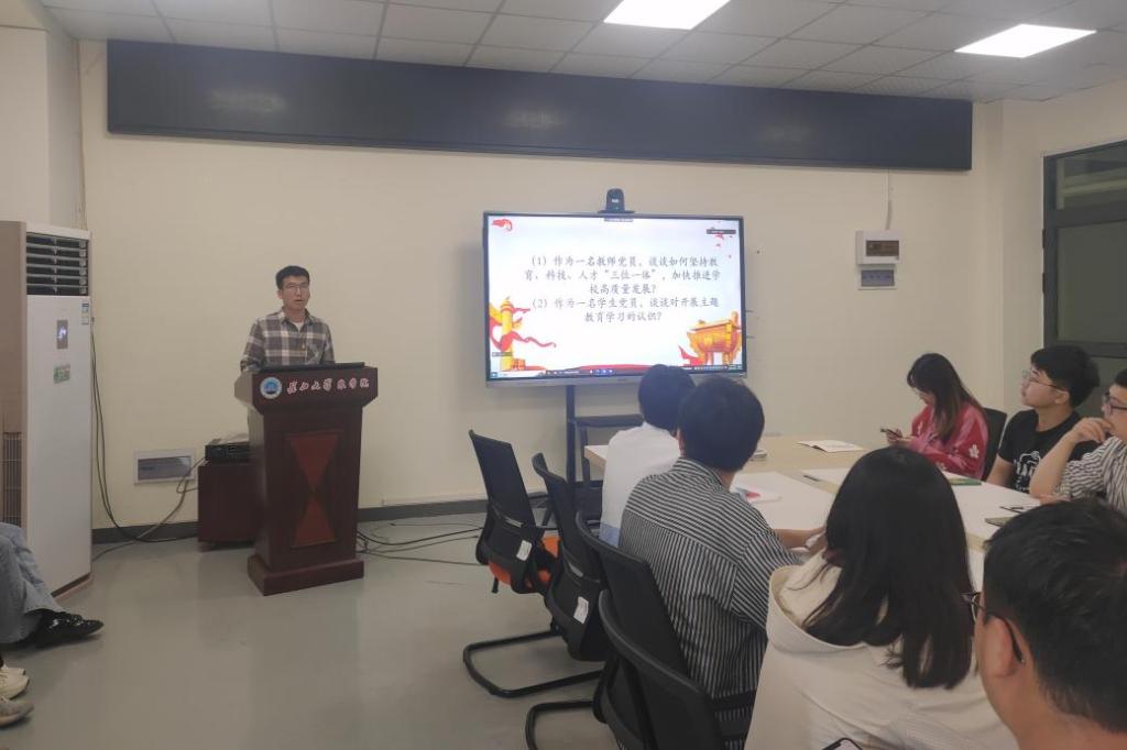 在主题研讨阶段,全体党员同志对“作为一名学生党员,谈谈对开展主题教育学习的认识?”纷纷提出自己的看法。会议最后,党支部书记杨云锋老师对近期工作做出总结发言,并对后期工作进行梳理安排。