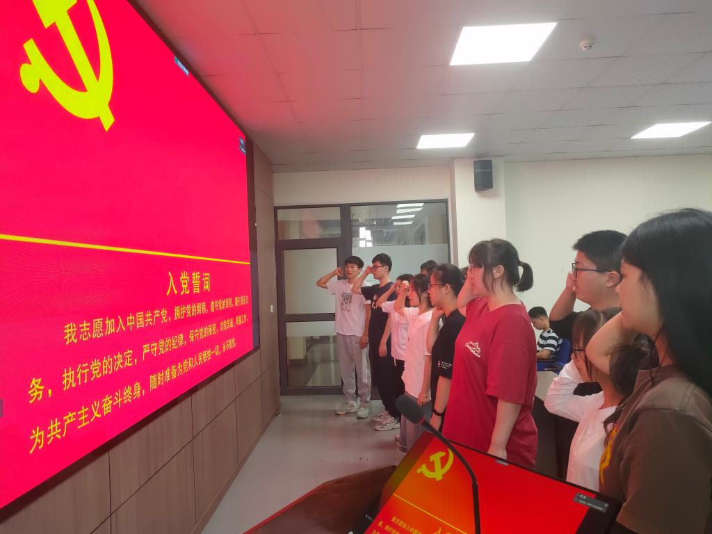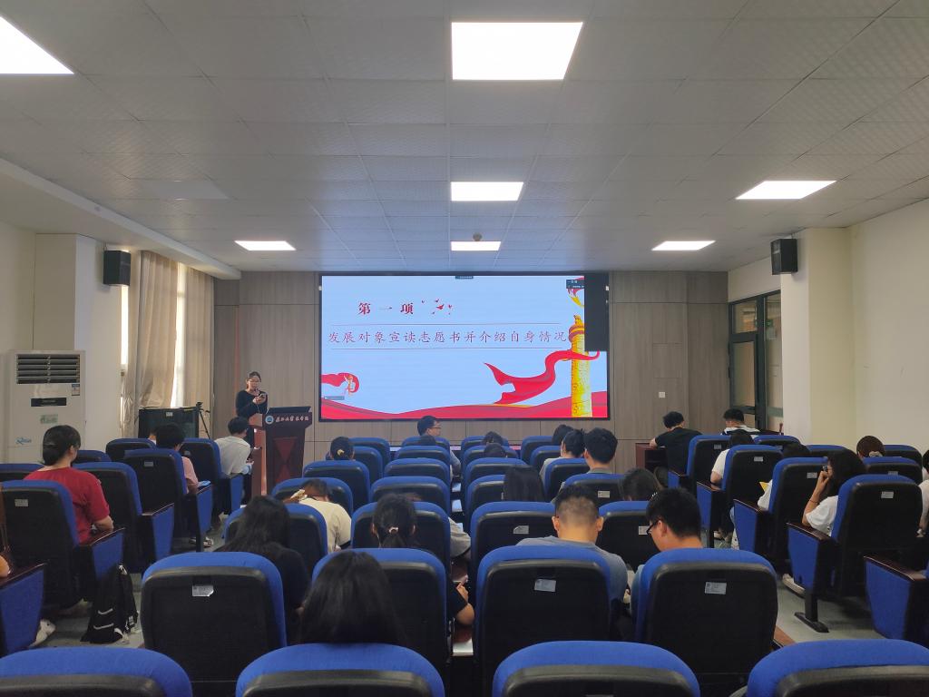 会议上,赵垠枭等11名发展对象依次发言,从思想、学习、工作、生活、入党动机等多个方面向党组织汇报自身情况。与会党员对这11名发展对象的表现做出了客观评价。发言完毕,正式党员以无记名投票的方式对这11位发展对象能否成为预备党员进行表决。共发放表决票22张,收回表决票22张。最终,赵垠枭等11名同志均投票通过,成为了新发展的预备党员。新发展的预备党员在组织委员李瑞杰同志的带领下,面向党旗,庄严宣誓。