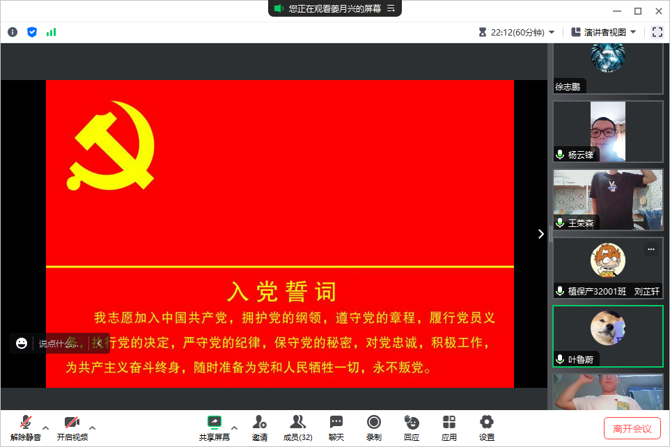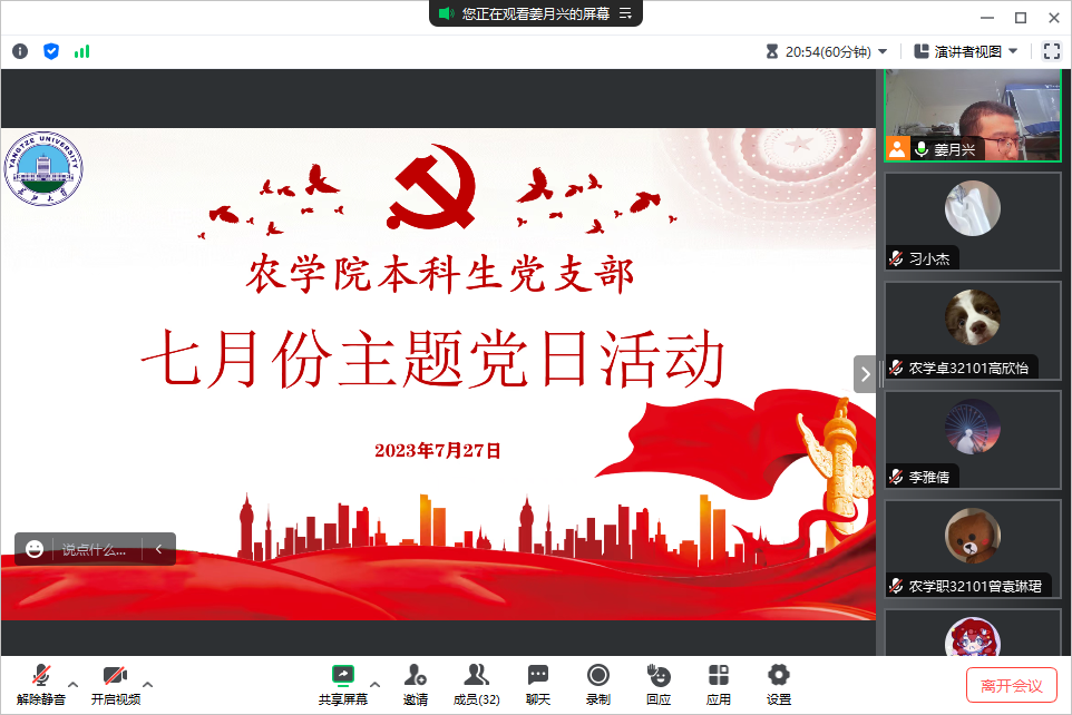 (通讯员 徐志鹏)7月27日晚上19:00,滚球app官网本科生党支部在腾讯会议开展七月主题党日活动。本次活动由支部党员姜月兴同志主持。