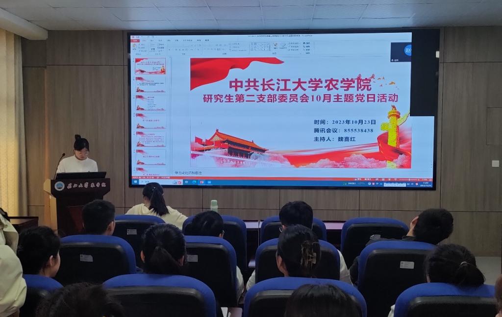 (通讯员 宋梦圆)10月23日下午3点,滚球app官网研究生第二党支部在农科大楼3071开展十月份主题党日活动,活动结合腾讯会议(ID:855 538 438)的方式同时在线上召开。全体在校党员和校外联培党员共同参与,活动由魏喜红同志主持。