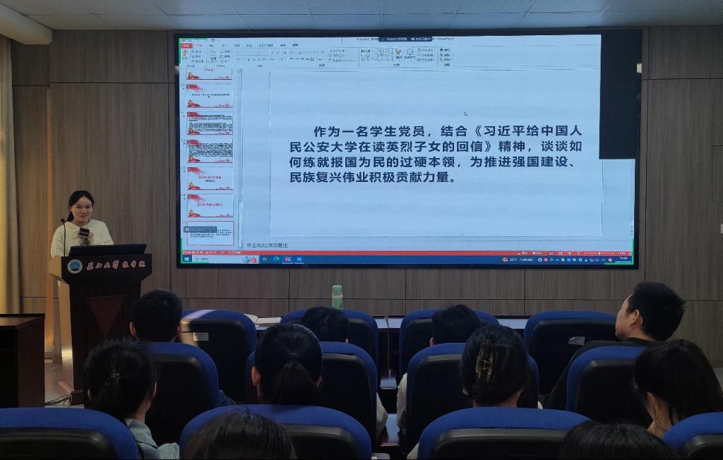 接着,全体党员以“作为一名学生党员,结合《习近平给中国人民公安大学在读英烈子女的回信》精神,谈如何练就报国为民的过硬本领,为推进强国建设、民族复兴伟业积极贡献力量”为主题展开研讨,魏喜红同志认为作为一名学生党员,为练就报国为民的过硬本领,要做到坚定理想信念,牢记初心使命;增强自身本领,打铁还得自身硬;敢挑重担,落实工作原则。韩晓文同志认为当代大学生要努力成为实现中华民族伟大复兴的先锋力量,全面深刻地看待事情发展,学会思考、善于分析、正确抉择,学会用正确的立场观点方法分析问题。